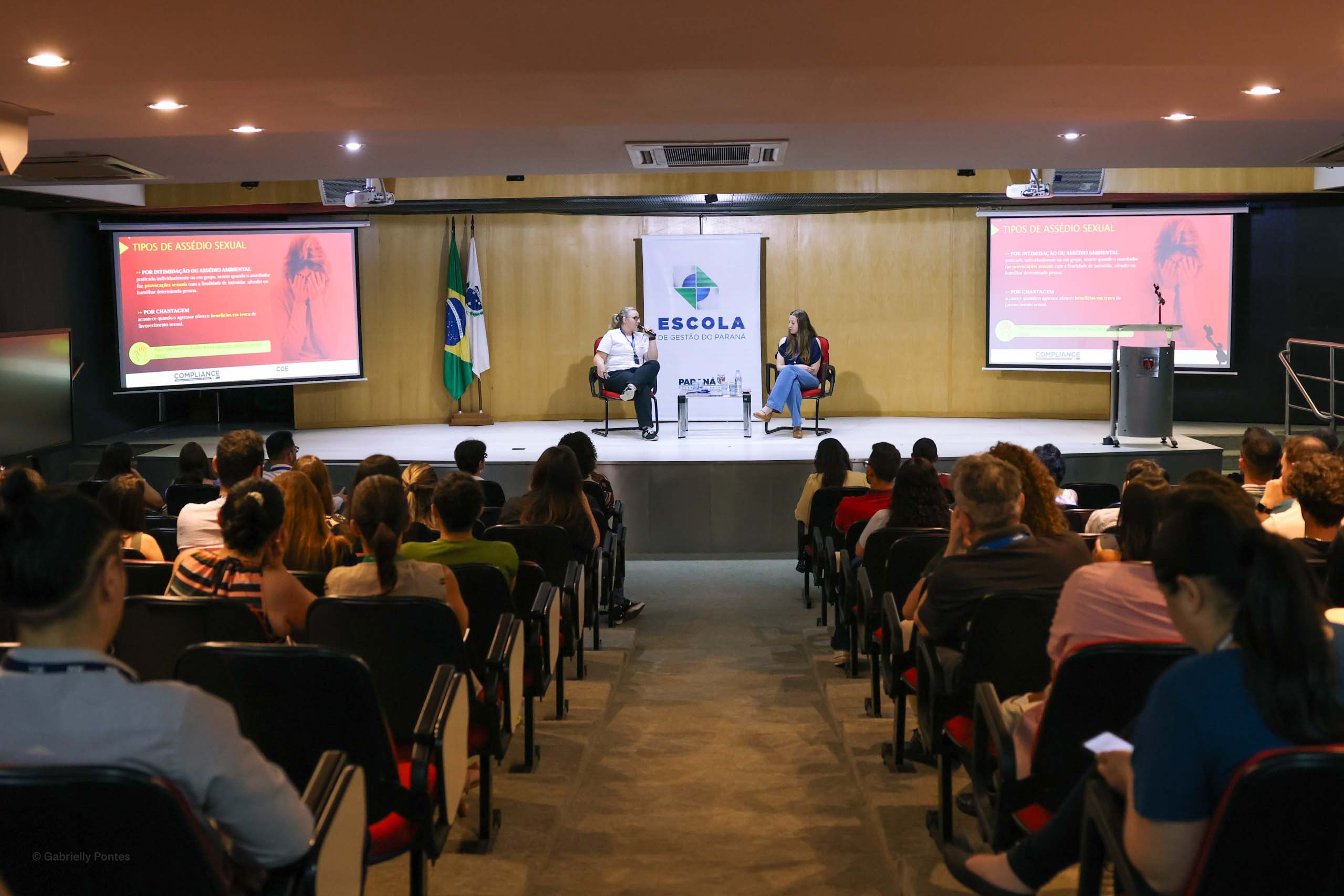 A Controladoria-Geral do Estado (CGE) retomou as palestras de prevenção aos vários tipos de assédio, com o objetivo de promover ambientes de trabalho saudáveis e respeitosos. Nesta quarta-feira (28), cerca de 100 servidores assistiram às explicações de profissionais da CGE, no auditório Mário Lobo, no Palácio das Araucárias, em Curitiba. Esta é a primeira de uma série de três palestras naquele local, com público estimado em 500 servidores.